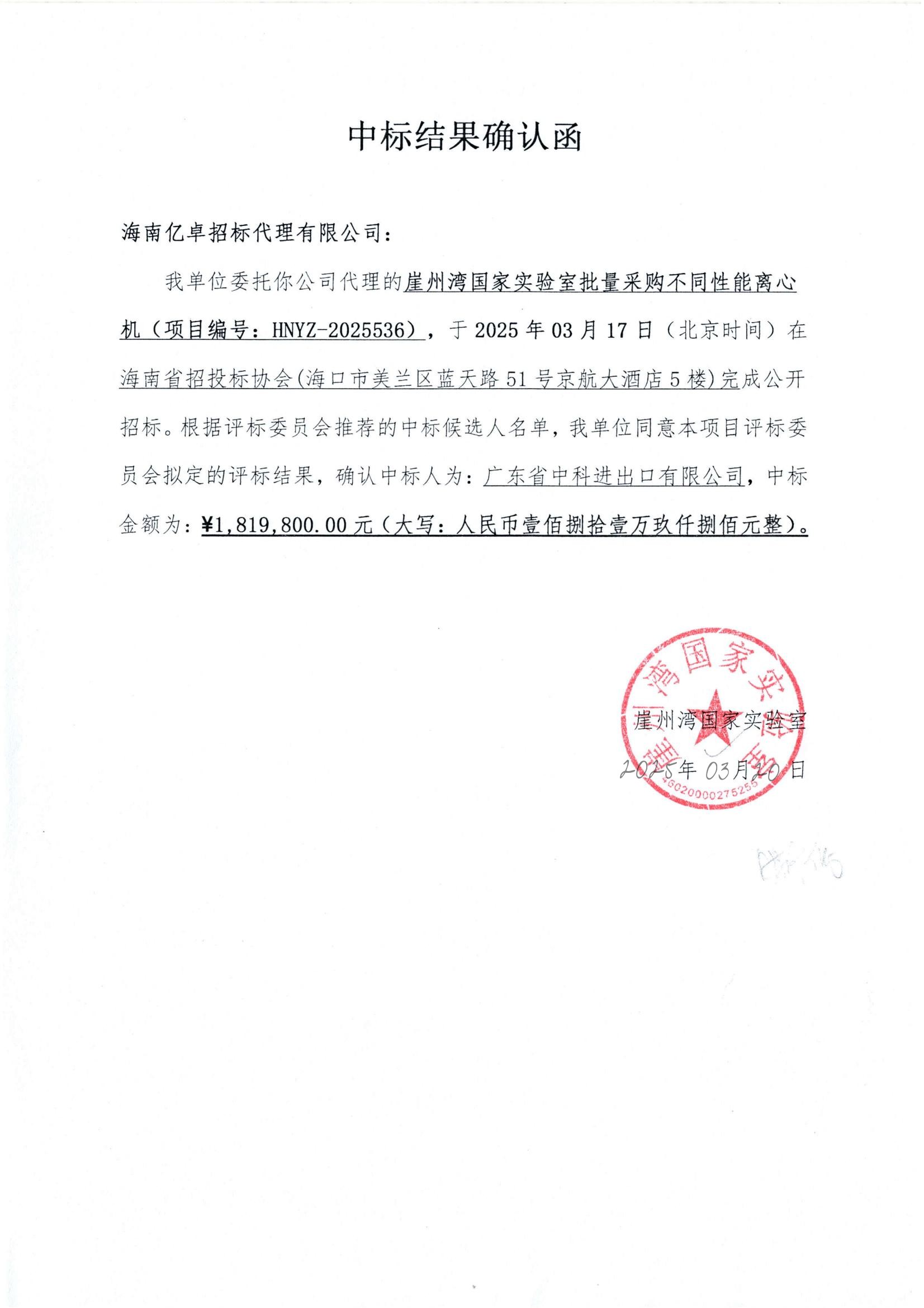 崖州湾国家实验室-崖州湾国家实验室批量采购不同性能离心机-中标公告