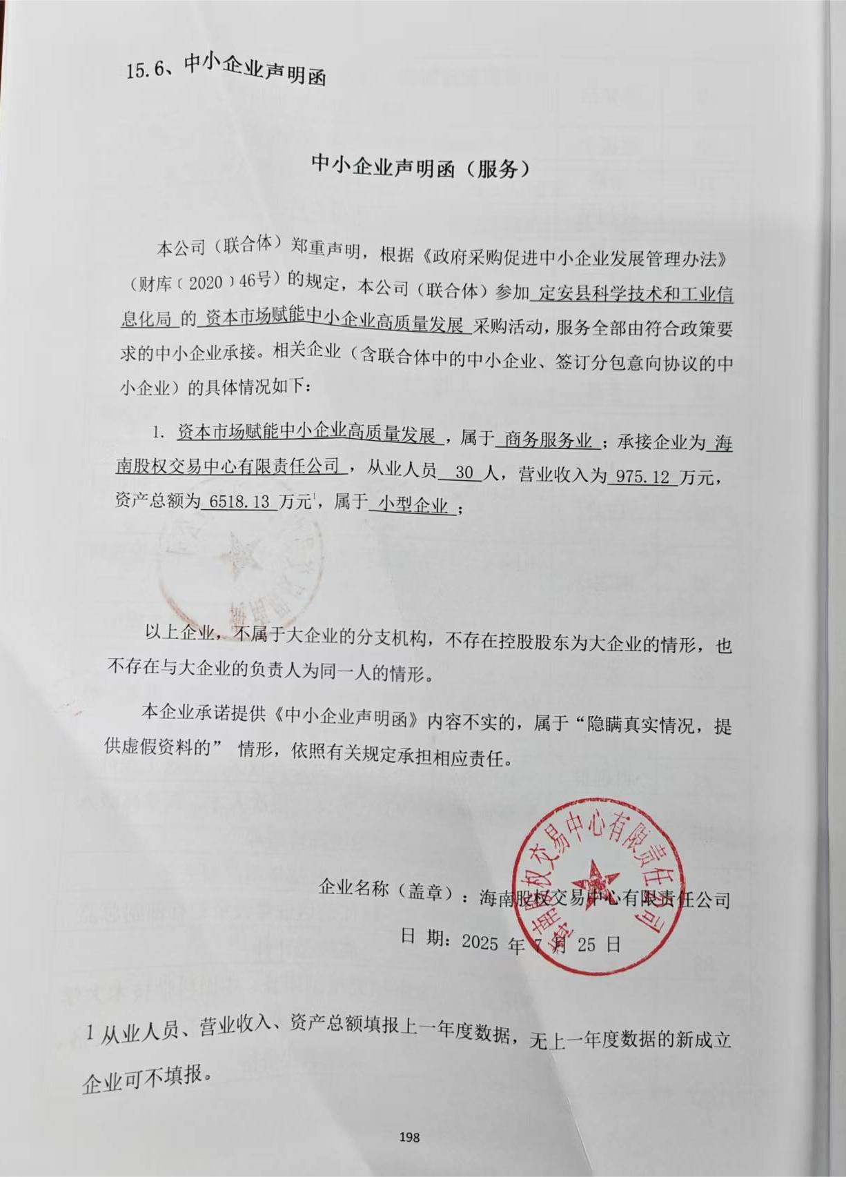 定安县科学技术和工业信息化局-资本市场赋能中小企业高质量发展-成交公告