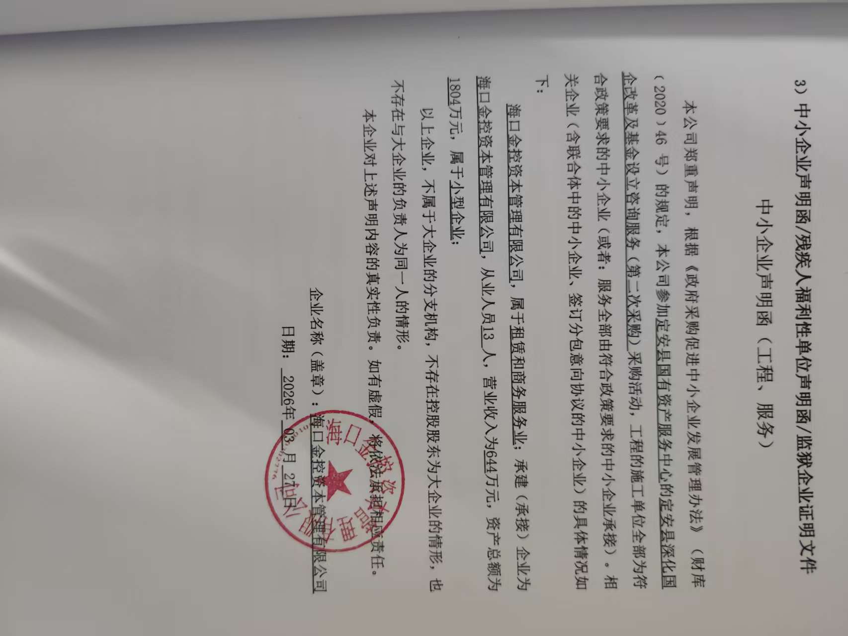 供应商名称:海口金控资本管理有限公司